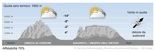 Nel pomeriggio il cielo sarà molto nuvoloso su gran parte del territorio con tratti soleggiati più lunghi sulla Val Venosta.